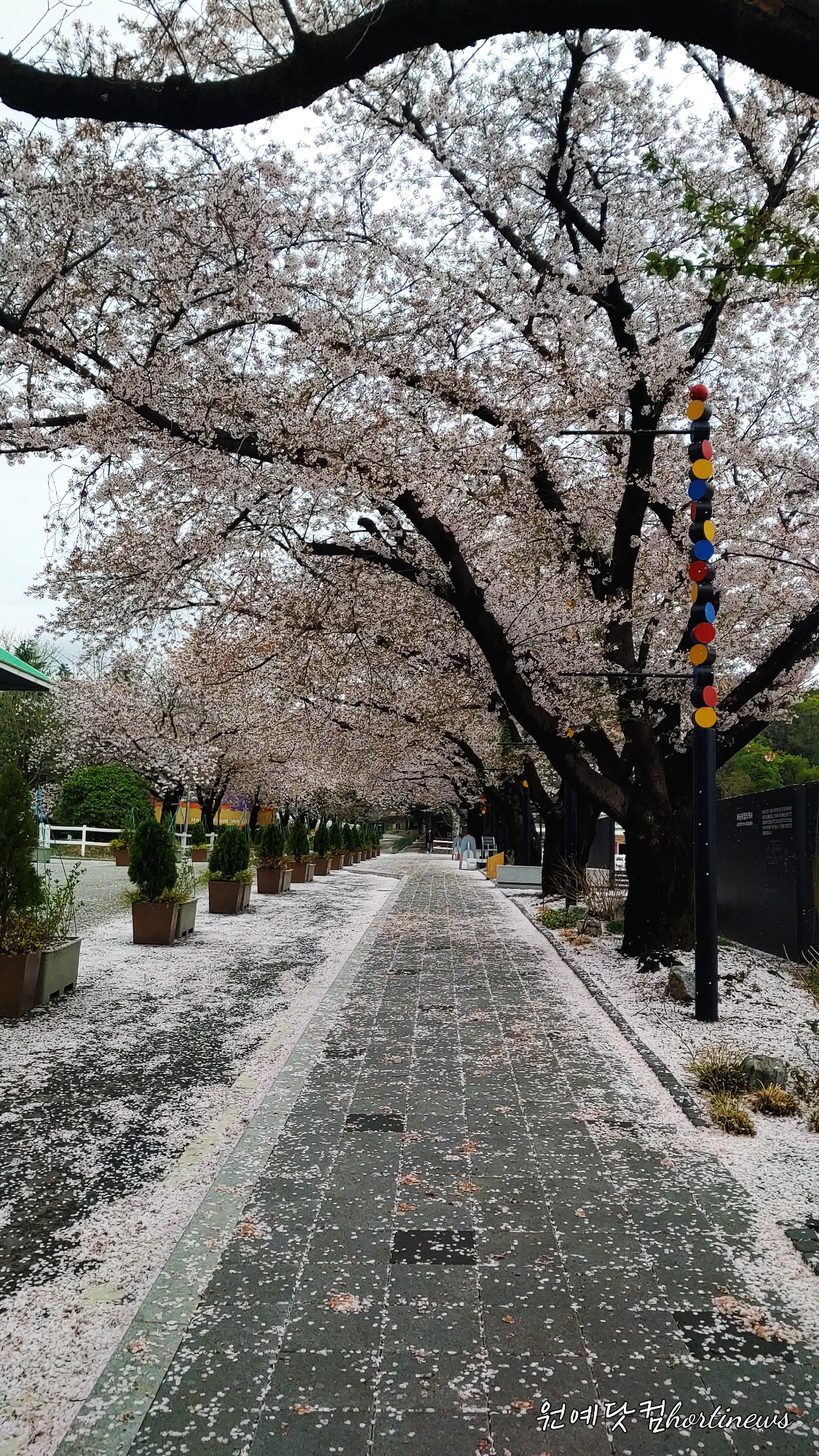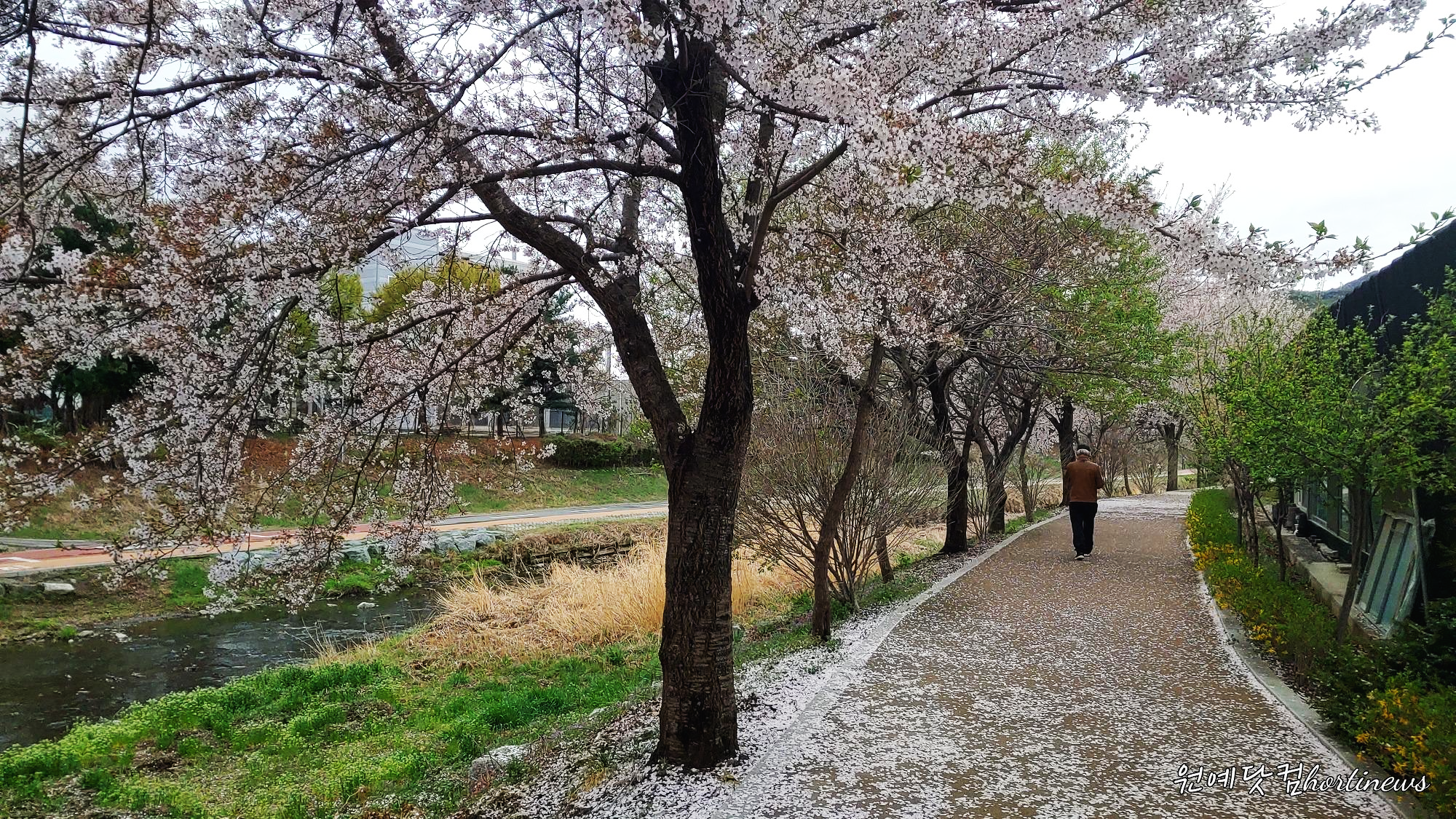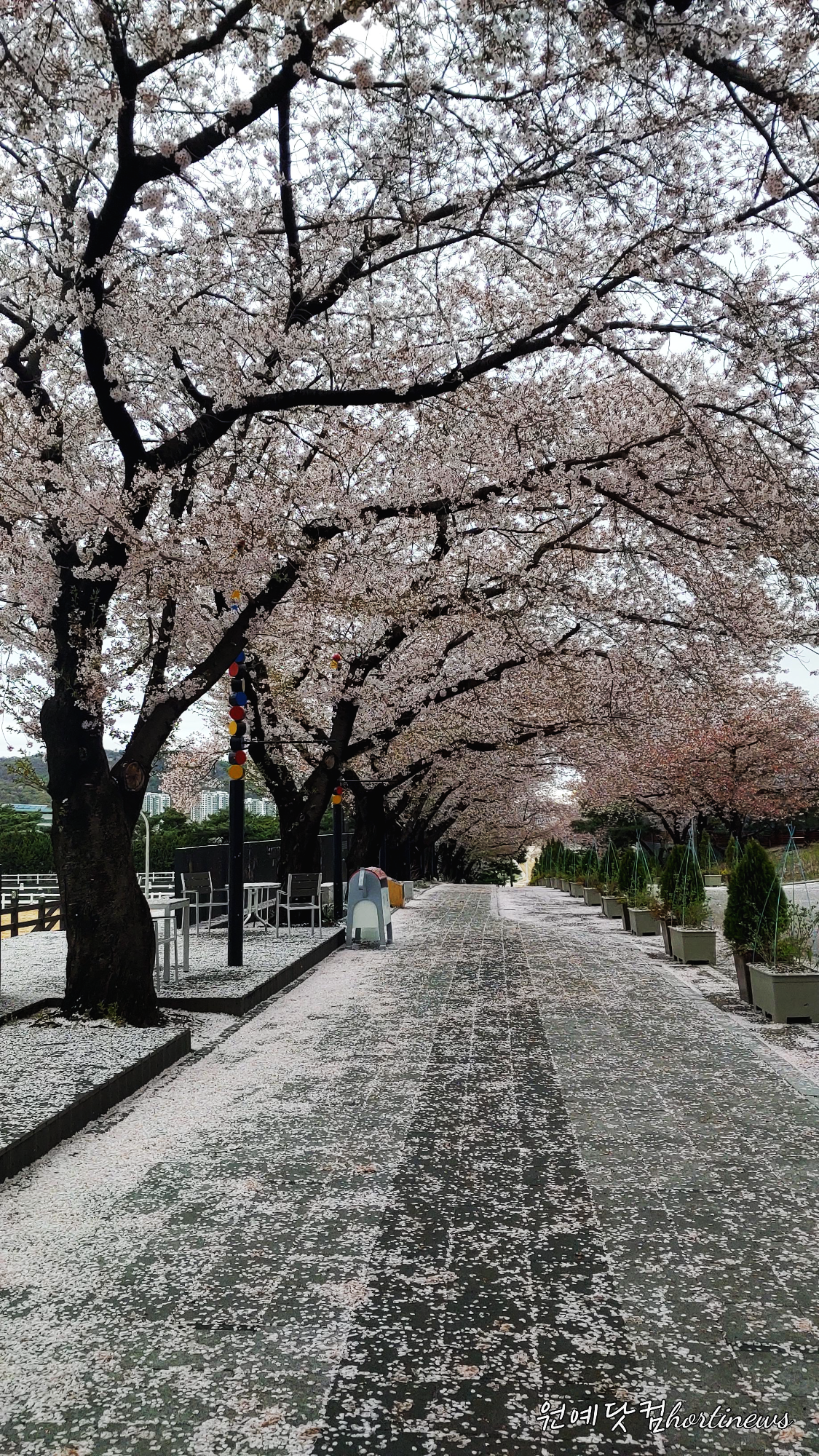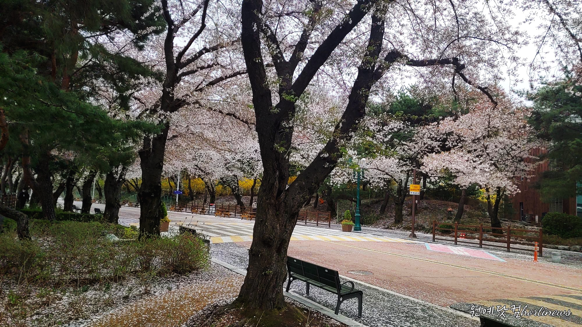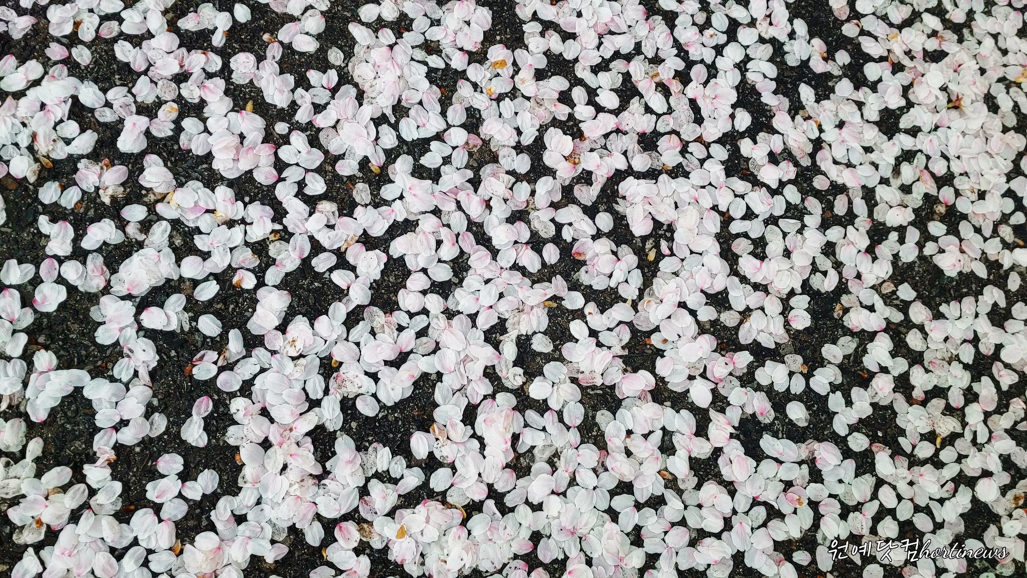 그리고 나는 떨어지는 마지막 벚꽃과 벚꽃 꽃눈을 세월이 쓸어가기전에 추억 속의 아름다운 기억의 마음속에 사진을 담고 오는 세월을 맞이하기 위해 인생의 생활로 뒤 찾아간다. (2022년 4월 13일 수요일 오후 1시)