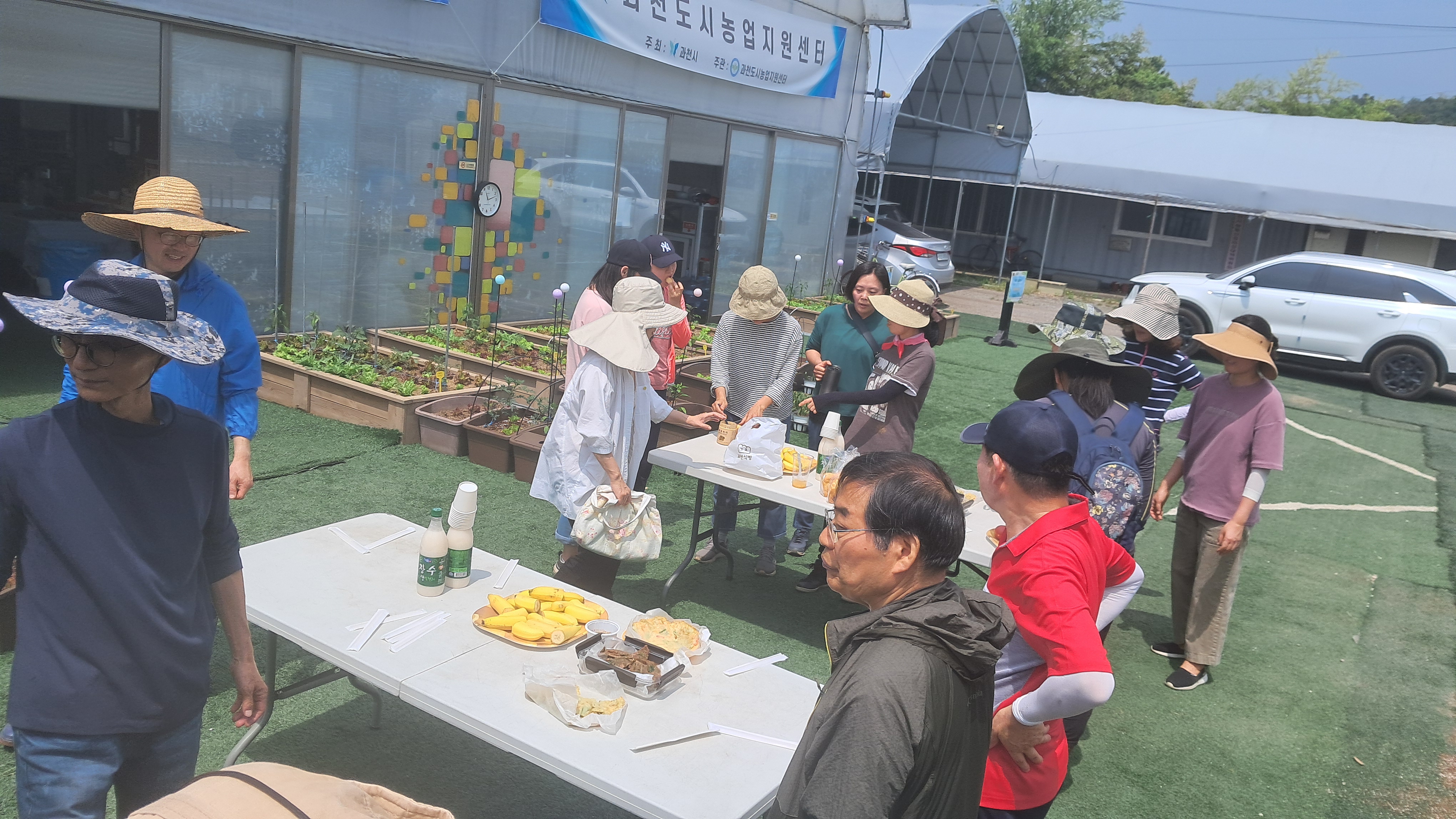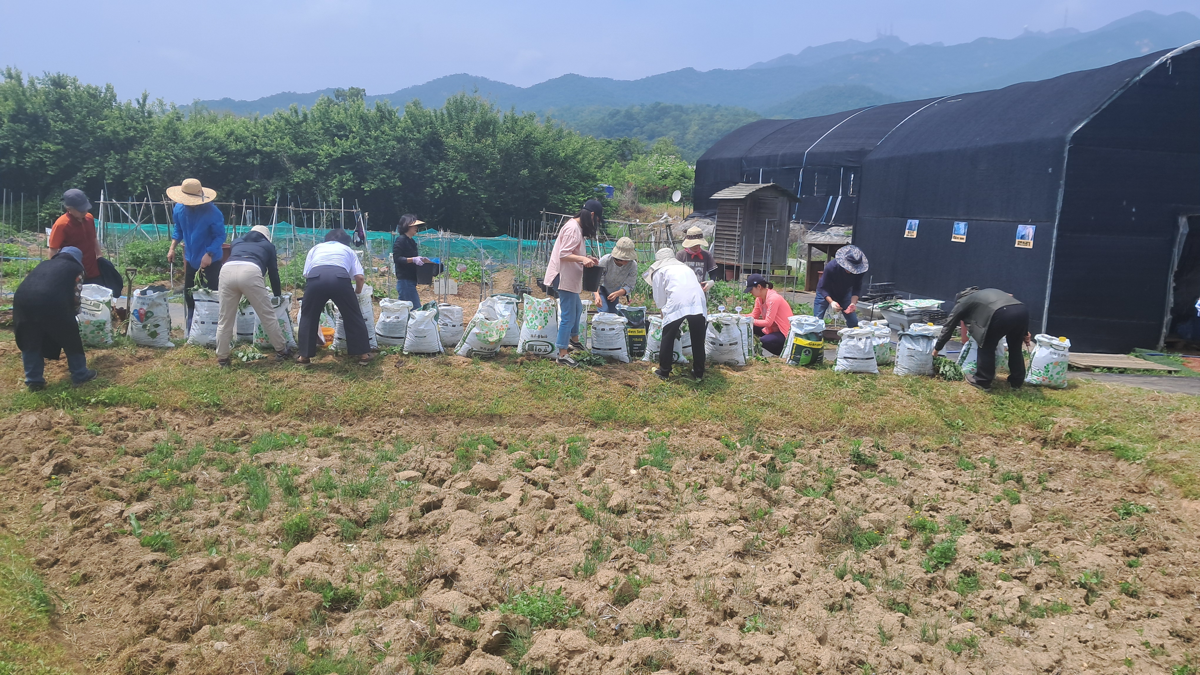 이번 5월22일 6차 교육 “포대 고구마 모종 심기 체험교육”을 비롯하여 토마토, 상추 등 농작물 텃밭관리 등 현장 교육을 시행하고 있으며, 이번 교육에 참여하고 있는 도시농부들은 생전 처음으로 포대 고구마 모종 심기 직접체험을 통해 참여자와 함께 상호 간의 소통과 재미를 느끼게 하는 소중한 교육이었다.