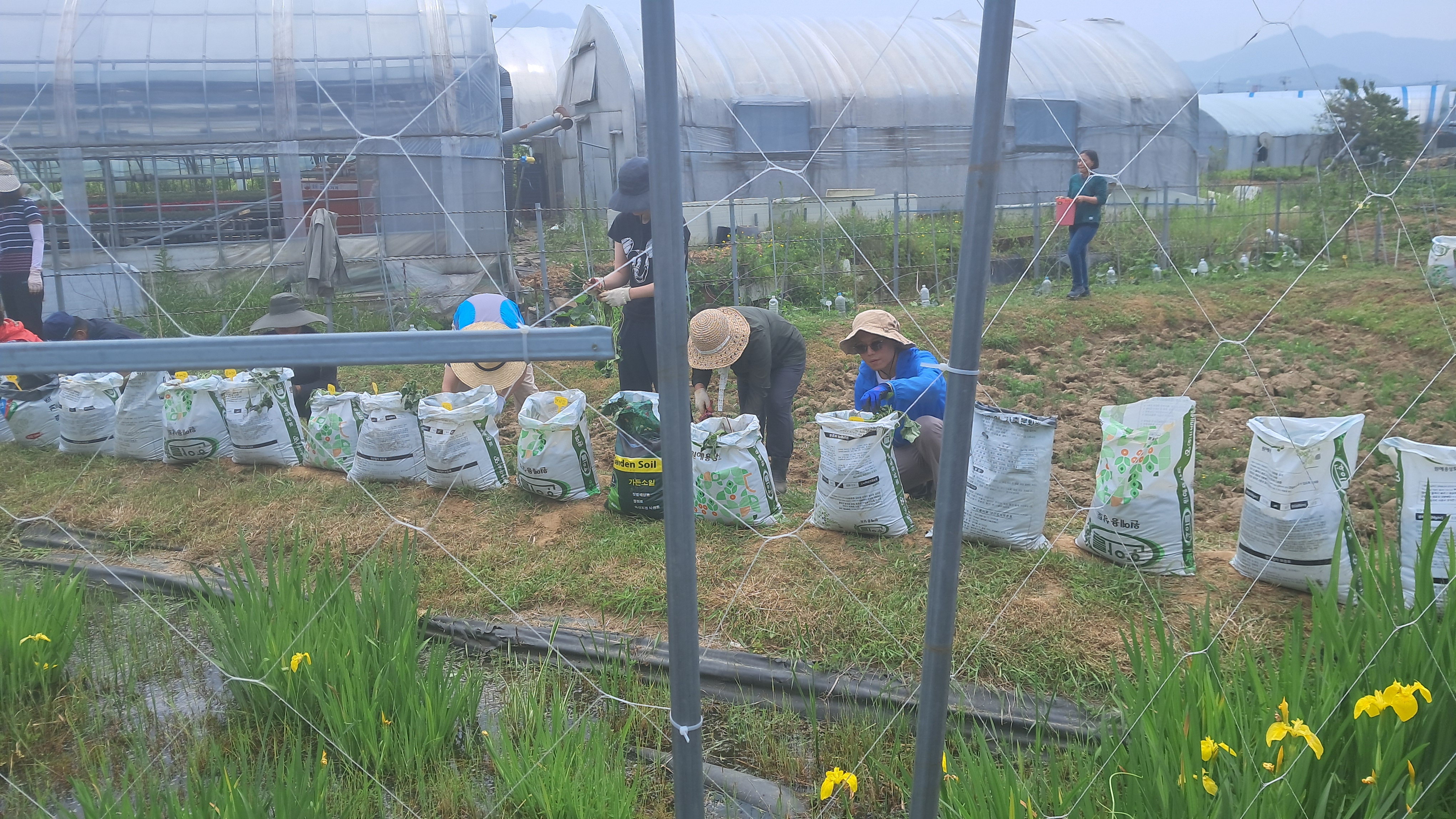 한국사이버원예대학 부설 과천도시농업지원센터(손병남 센터장)에서 과천시 과천동 소재 하하텃밭에서 지난 5월 22일 과천 도시농부학교 과천시민 예비농부들이 “포대 고구마 모종 심기 현장 체험교육”을 실시하였다.