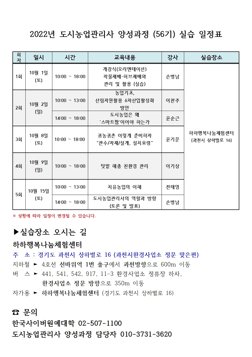 ▶실습장소 : 과천시 상하벌로16(하하행복나눔체험센터)