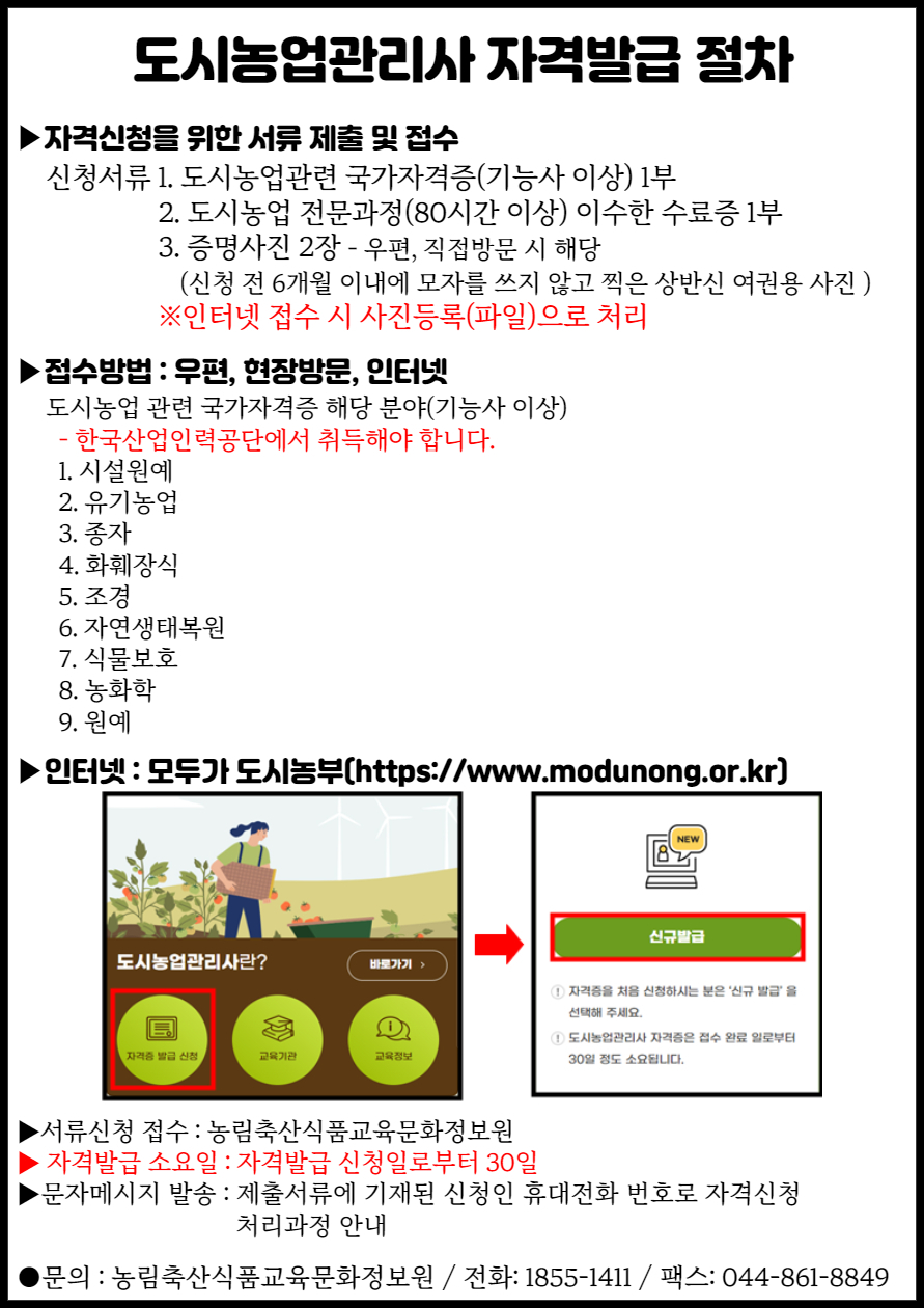 아래 사항은 도시농업관리사가 되기 위한 필수 조건입니다. 참고 부탁드립니다!!